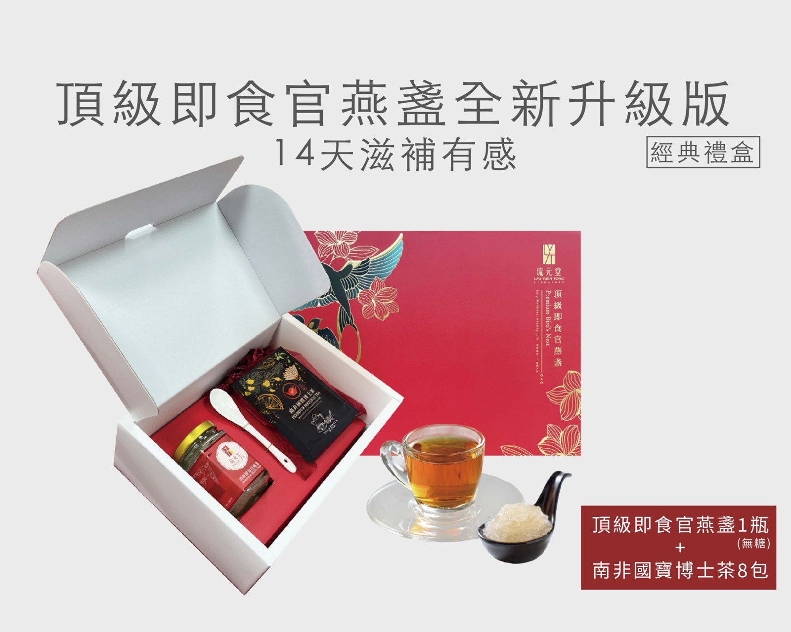 - 由天然燕盞乾挑後熬煮製成,開罐後若發現些微金絲燕絨羽、雜質屬正常現象,請放心食用