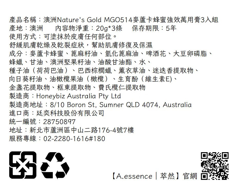 ✅ MGO514養護級麥蘆卡蜂蜜成份🍯