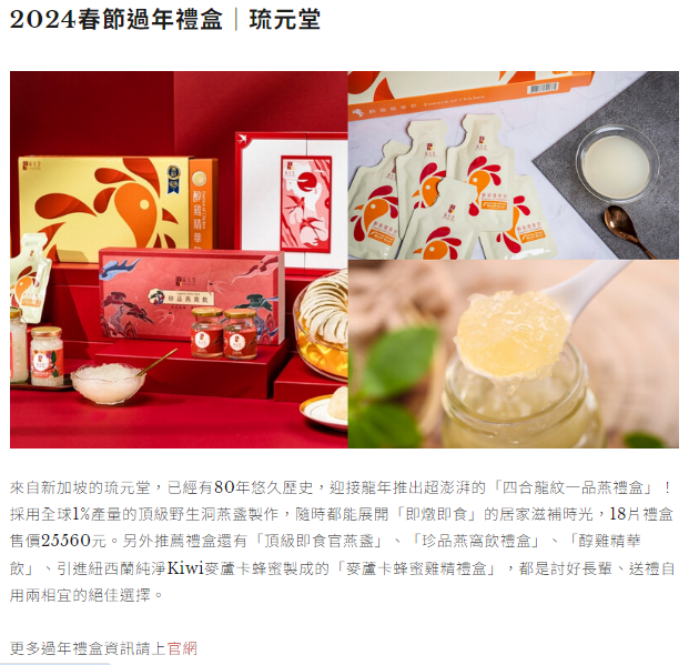 2024-02-01 15:00 【Marie Claire 美麗佳人】2024過年送禮不踩雷!「17款人氣春節禮盒」價格&口味一次看 Marie Claire 美麗佳人 琉動新訊 https://reurl.cc/RWYMYn